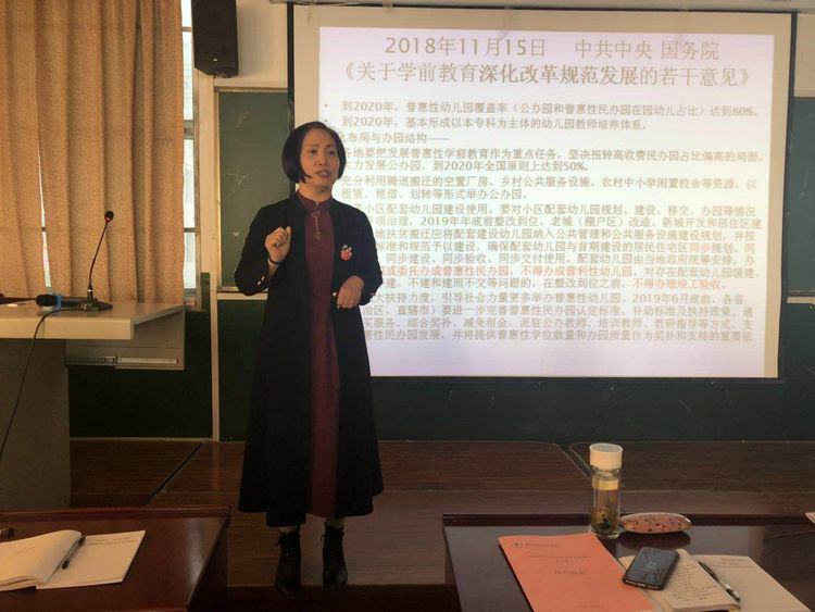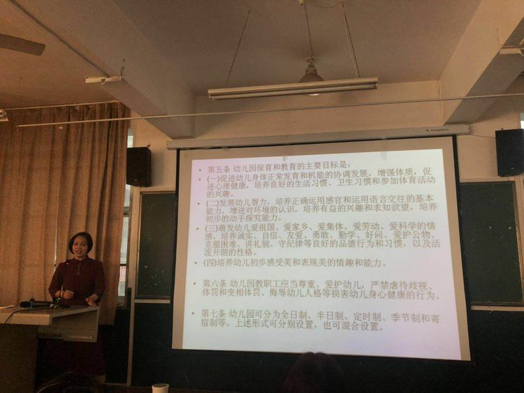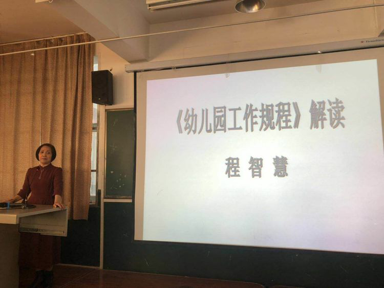 下午西安浐灞幼儿园程园长为我们作《幼儿园工作规程》的专题讲座。